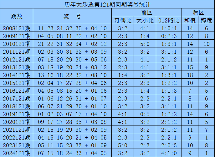 袁军师体彩大乐透第2025121期历史同期奖号分析: