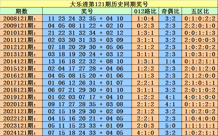 小霸王大乐透第2025121期历史同期前区定位分析