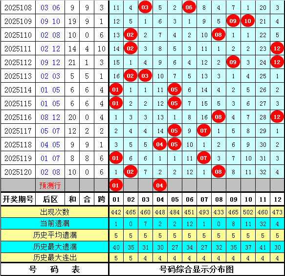 小霸王大乐透第2025121期历史同期后区定位分析