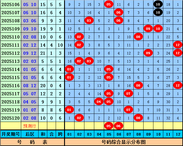 后区分析:上期后区为全偶号码02+08,最近10期后区号码奇偶比为11:9,最近50期后区奇偶比为50:50,本期后区参考一奇一偶组合,关注两码05、06。