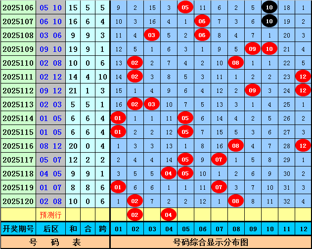 三少第2025121期体彩大乐透后区尾数分析:上期后区开出奖号02和08,为全2路尾数奖号,本期后区排除0路尾数号码,五码参考01、02、04、10、11。