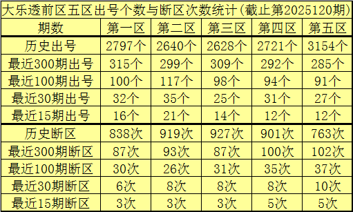李老头大乐透第2025121期前区五区奖号分析: