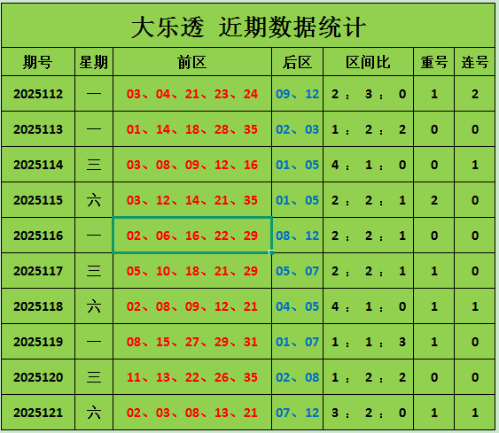 王林大乐透第2025122期推荐: