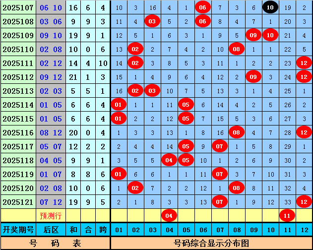 周横大乐透第2025122期号码推荐: