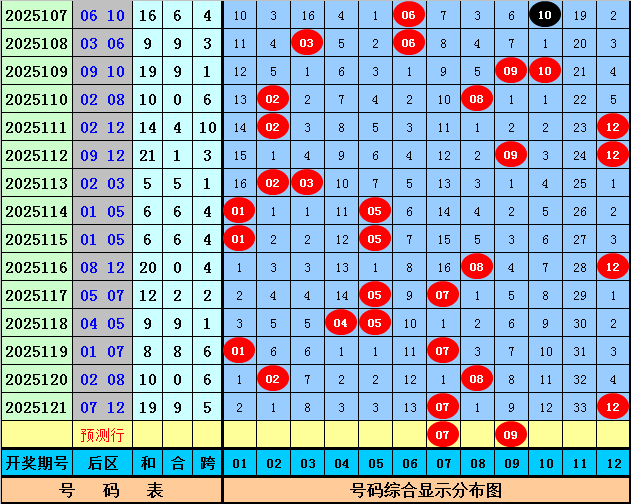 后区分析:上期后区为一奇一偶号码07+12,最近10期后区号码奇偶比为12:8,最近50期后区奇偶比为49:51,本期后区看好全奇组合,参考号码07、09。