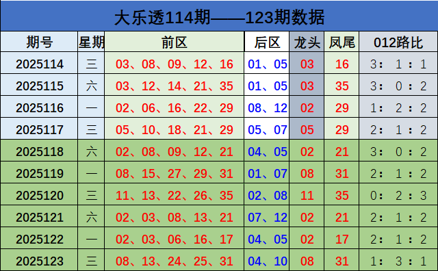 大乐透前区分析: