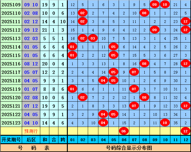 赵研大乐透第2025124期奖号012路分析: