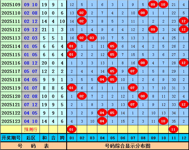 后区判断:后区第124期历史同期奖号大小比总比例为6:11,小 号表现较冷,本期小 号回补,关注一大一小,看好两码01、11。