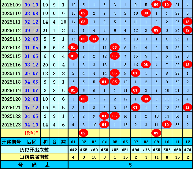 后区五码推荐:02、03、04、09、10