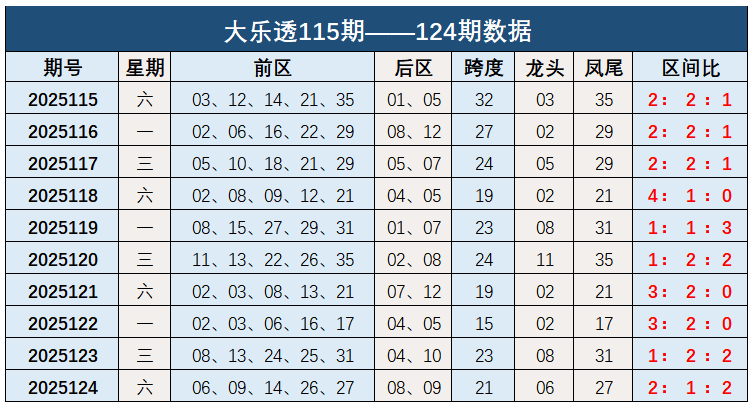 钱海峰大乐透第2025125期本期推荐: