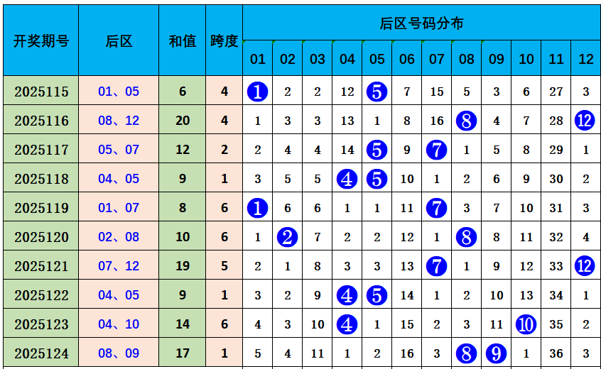 大乐透后区综合分析: