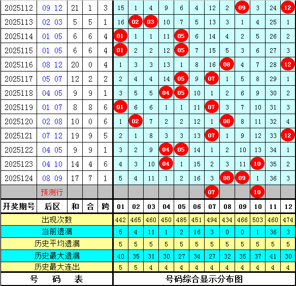 和值跨度:上期和值开出82,对比第2025123期和值下降了19个点位,本期看好和值走小,关注小 号区域和值,预计在72附近。