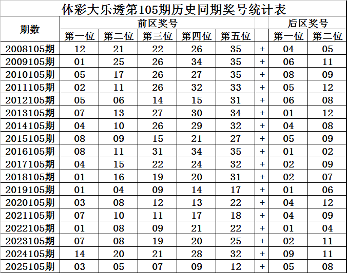 王守礼体彩大乐透第2025105期历史同期定位升重降号码分析: