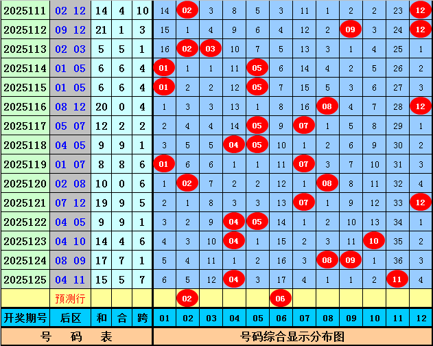 后区分析:上期后区开出1路+2路奖号:04和11,最近20期后区奖号012路比为11:14:15,0路号码走势较冷,目前012路号码分别遗漏1期、0期、0期,本期后区注意号码02、05、06、08、11,两码参考02、06。