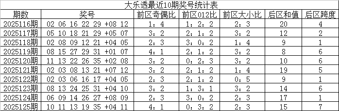 综合分析,大乐透第25126期前区012路比参考2:2:1。