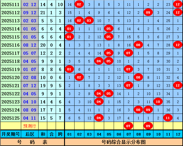 后区大范围推荐:05、07、09、10、12
