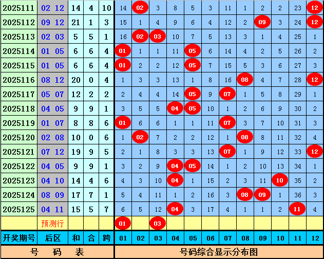 后区第二位分析分析:在第126期历史同期开奖中,该位号码升重降次数比为9:1:6,出现范围在03-12区间,最近5年后区第二位分析号码升重降次数比为3:1:1,出现范围在03-12,对比最近几年同期号码,今年第126期看好后区第二位分析号码逐渐下降,关注号码03。