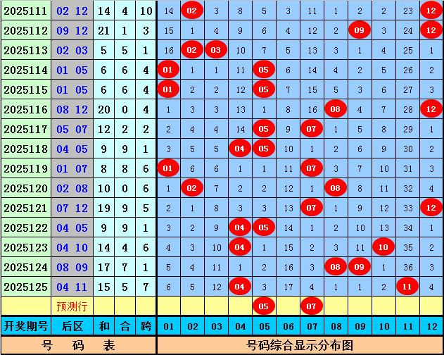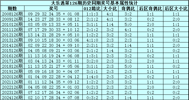 后区判断:后区第126期历史同期奖号大小比总比例为5:12,大小 号码走势基本持平,本期预计大小 号码继续平衡开,参考一大一小,两码关注05、07。