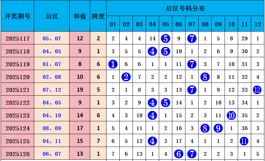 后区第二位:前10期开出奖号:其中奇数号码开出7次,偶数号码开出3次,奇偶走势奇数占优,本期注意偶数号码出现。参考号码:12。