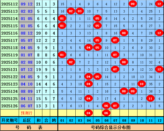 后区分析:上期后区开出0路+1路奖号:06和07,最近20期后区奖号012路比为12:14:14,0路号码走势较冷,目前012路号码分别遗漏0期、0期、1期,本期后区注意号码04、06、08、10、12,两码参考04、06。