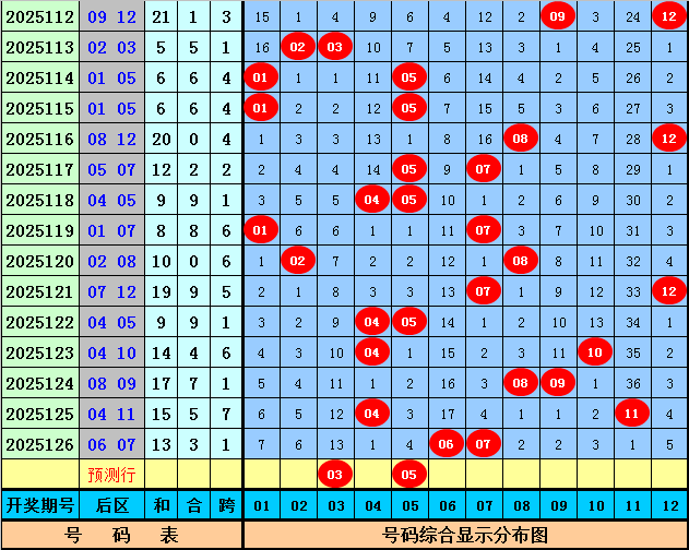 马哥第2025127期大乐透后区五码参考:02 03 05 08 12