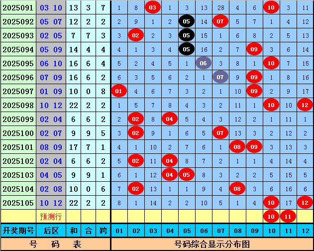 后区分析:上期后区开出1路+0路号10和12,最近30期后区奖号012路比为16:22:22,最近10期后区奖号012路比为5:8:7,本期后区注意号码06、07、09、10、11,单挑两码组合10、11。