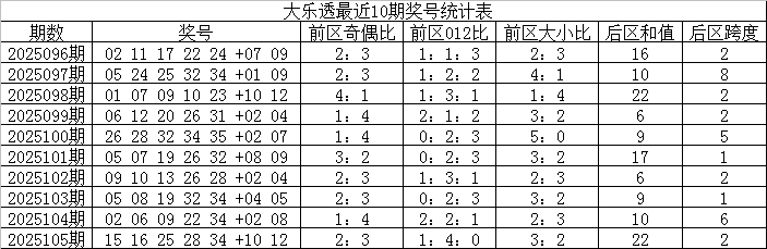 大乐透第2025105期奖号为:15 16 25 28 34+10 12。当期前区奖号012路比为1:4:0,冷热比为3:2,包含1个重号:34,包含连码组合15 16,后区开出全偶、全大组合。