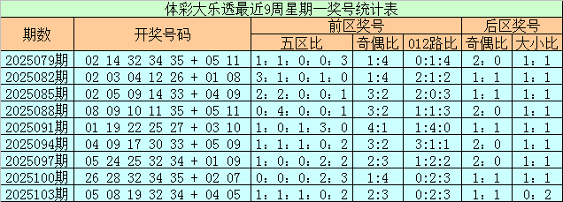 上期回顾:体彩大乐透上周星期一(第2025103期)奖号为05 08 19 32 34 + 04 05,前区奖号五区比为1:1:1:0:2,奇偶比为2:3,012路比为0:2:3,后区奖号奇偶比为1:1,大小比为0:2。