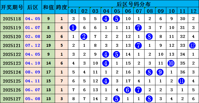 后区分析:上期后区开出号码05、08,为小大奇偶组合。上周一后区奖号为04、11,小大偶奇组合。近10期后区奇偶比为9:11,近5期奇偶比为4:6,本期后区预计小大奇偶组合热出,重点关注两码:01、08。