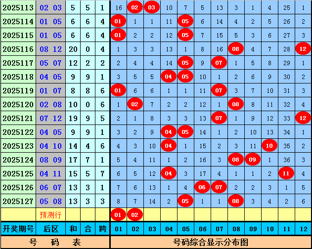 后区第二位:上期该位开出号码08,为遗漏2期的热码,前7期该位分别遗漏:4期、3期、13期、11期、36期、4期、2期,其中冷温热号码个数比为3:2:2,温码出现较少,本期适当关注回补,注意温码02。