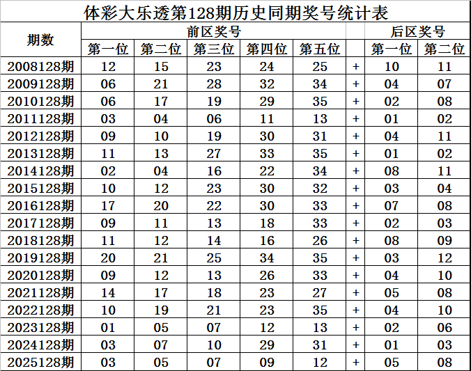 王守礼体彩大乐透第2025128期历史同期定位升重降号码分析: