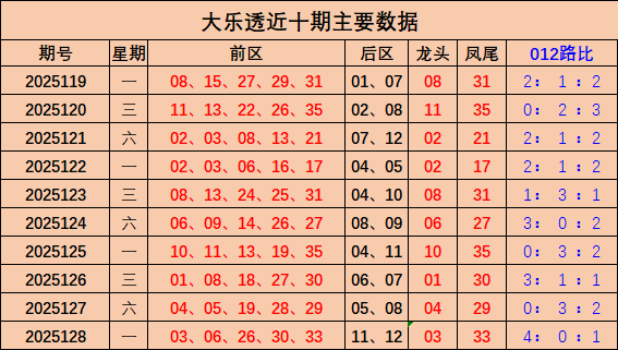 上期凤尾开出大码奇数球33,奇偶比9:1,整体看奇数球出现次数较多,本期预测是大码奇数球优势开出,推荐号码33。
