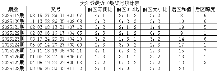 综合分析,大乐透第25129期前区012路比参考2:2:1。