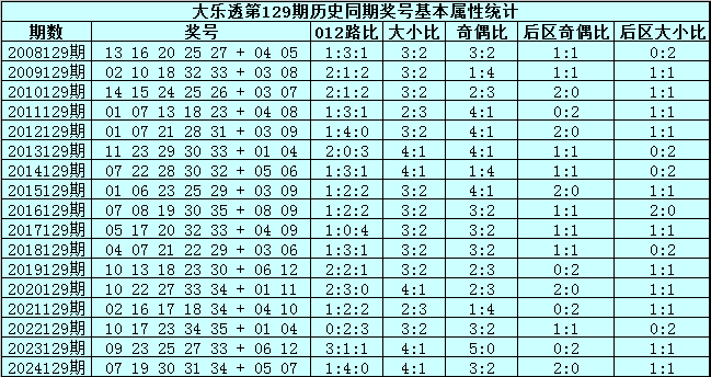 大乐透第2025129期历史同期号码分析: