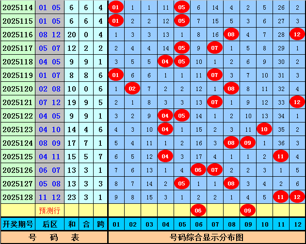 后区分析:在第129期历史同期开奖中,后区奖号全偶出现4次,一奇一偶出现8次,全奇出现5次,今年第129期后区预计出现一奇一偶组合,看好两码06和09。