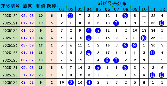 后区分析:大乐透后区上期开出偶偶组合,跨度2。近10期后区奇偶组合出现3期,偶奇组合出现4期,奇奇组合出现0期,偶偶组合出现3期;近10期后区两码跨度1-5开出7次,6-11开出3次,本期后区两码综合推荐:03、10。