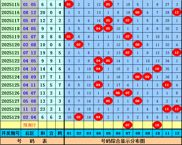 后区第二位:上期该位开出号码04,为遗漏3期的热码,前7期该位分别遗漏:13期、11期、36期、4期、2期、6期、3期,其中冷温热号码个数比为3:2:2,温码出现较少,本期适当关注回补,注意温码10。
