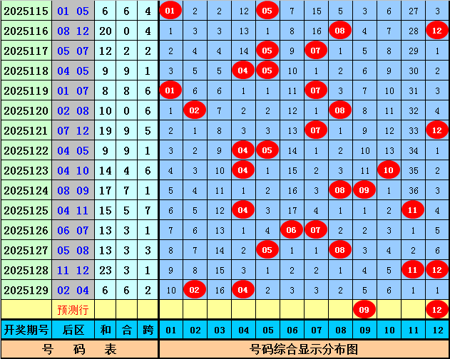 后区分析(一区01-04,二区05-08,三区09-12):上期后区开出奖号02和04,最近10期后区三区落号比为6:13:6,本期后区关注号码02、08、09、10、12,后区两码参考09、12。
