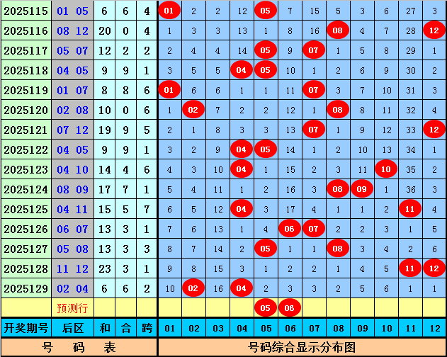 后区分析:上期后区开出号码02和04,最近10期后区奖号奇偶比为7:13,大小比为11:9,本期后区看好号码02、03、04、05、06,后区单挑两码05、06。