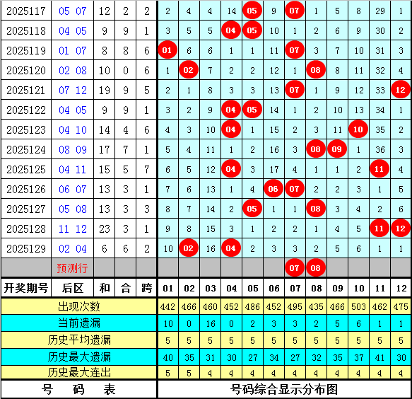 和值跨度:上期和值开出89,对比第2025128期和值下降了9个点位,本期看好和值走小,关注小 号区域和值,预计在81附近。