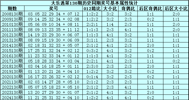 前区大小比推荐:第130期历史同期奖号中,号码大小比总比例为51:34,其中大小比0:5→0次、1:4→1次、2:3→5次、3:2→4次、4:1→7次、5:0→0次,小 号出现较少,本期重防小 号回补,关注大小比2:3。