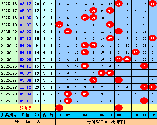 后区号码分析:第131期历史同期开奖中,后区两码一大一小开出9次,全大开出3次,全小开出5次,本期后区预计出现一大一小奖号,参考号码01、02、08、11。