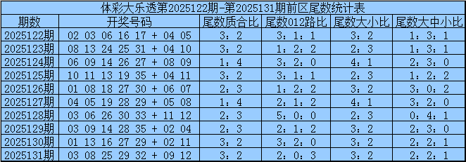 三少第2025132期体彩大乐透前区尾数分析: