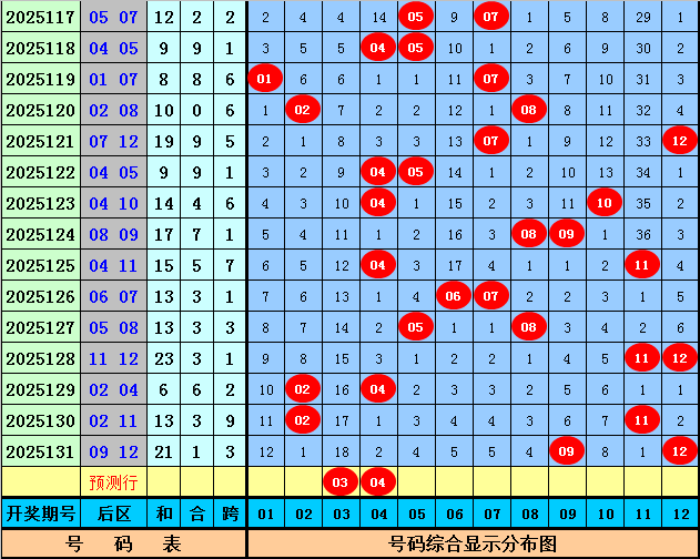 三少第2025132期体彩大乐透后区尾数分析:上期后区开出奖号09和12,奖号尾数为0路和2路,本期后区排除2路尾数号码,五码参考03、04、05、07、10。