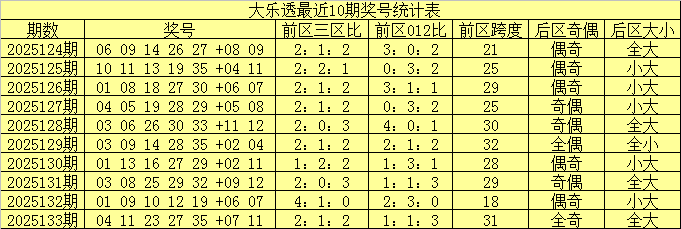 大乐透第2025133期奖号开出:04 11 23 27 35 +07 11。其中前区三区比为2:1:2,012路比为1:1:3,后区开出全大、全奇奖号。