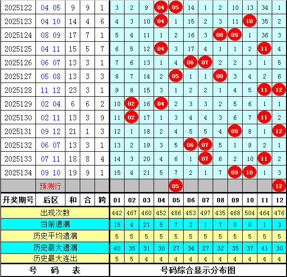 上期回顾:体彩大乐透第2025134期开出号码:07 12 18 27 33 + 09 10,其中前区奖号尾数奇偶比为3:2,大小比为3:2,012路比为1:2:2,大中小比为3:1:1,后区奖号尾数奇偶比为1:1,大小比为1:1。
