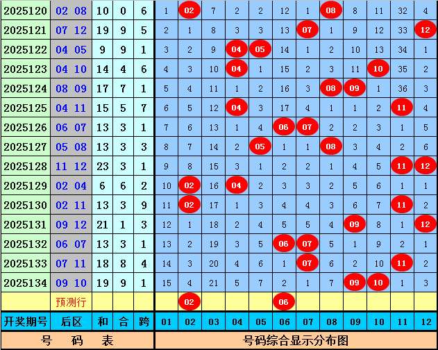 马哥第2025135期大乐透后区五码参考:02 03 04 06 11