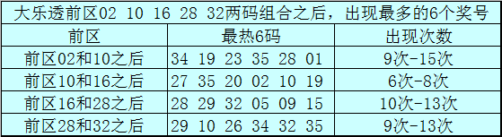 前区两码02和10和之后表现最热的6个号码为:34、19、23、35、28、01;