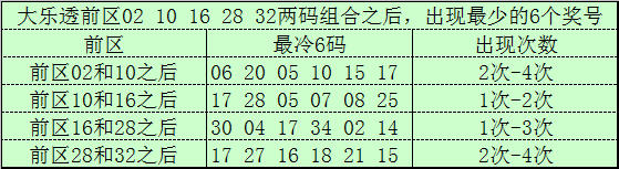 前区冷码统计:大乐透第25135期前区奖号为:02、10、16、28、32,截止第25135期历史上大乐透已经开出了2803期奖号了,在连续两码奖号中: