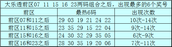 前区两码07和11和之后表现最热的6个号码为:29、03、19、21、24、22;